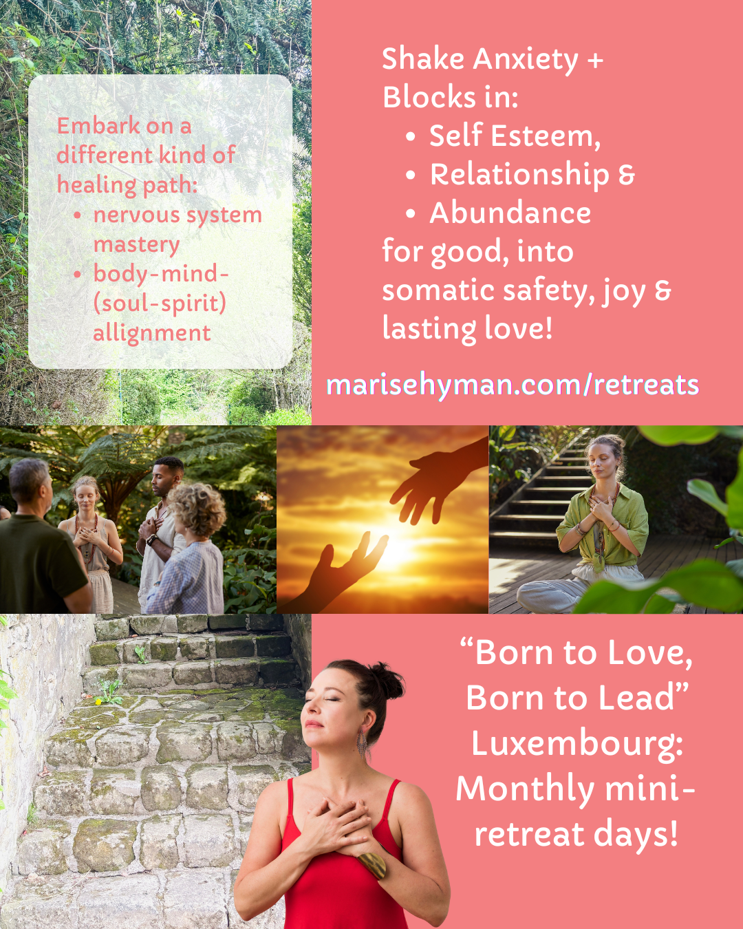You can also join Marise’s online Healing Club community with free resources & somatic healing tools, with the SoulSHIP membership offering monthly group Healing Calls, which also incorporates Marise’s other inner-growth modalities, e.g. Head Trash reCoding.